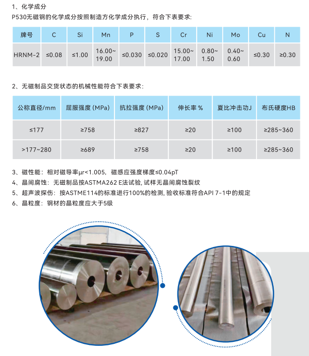 無磁鋼介紹-和瑞HRNM-2(P530級)技術(shù)標(biāo)準(zhǔn)